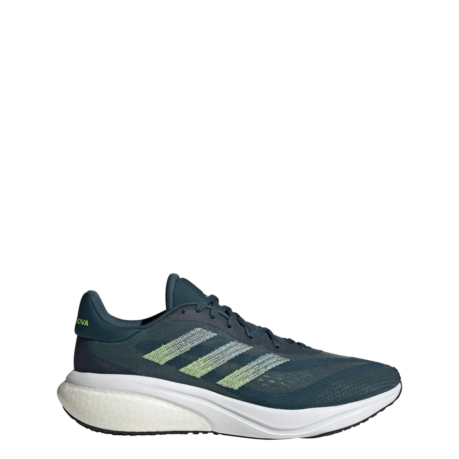 Whether you run near, far, swift or slow, the adidas Supernova 3 Running shoes help you run in your comfort zone. They feel good from the moment you step in, with a breathable mesh upper and padding at the tongue and heel. A precisely balanced mix of Bounce and BOOST cushioning delivers both comfort and energy so you enjoy every step on the road towards your personal running goals.Made with a series of recycled materials, this upper features at least 50% recycled content. This product represents just one of adidas’ solutions to help end plastic waste.