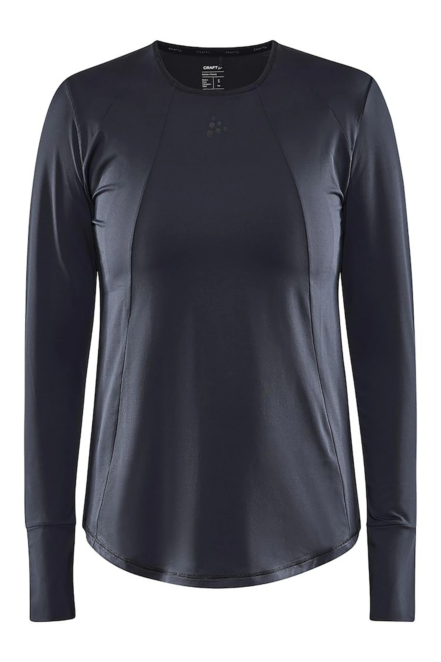 The long-sleeve tee is made of a stretchy and quick-drying jersey fabric from recycled polyamide and polyester,