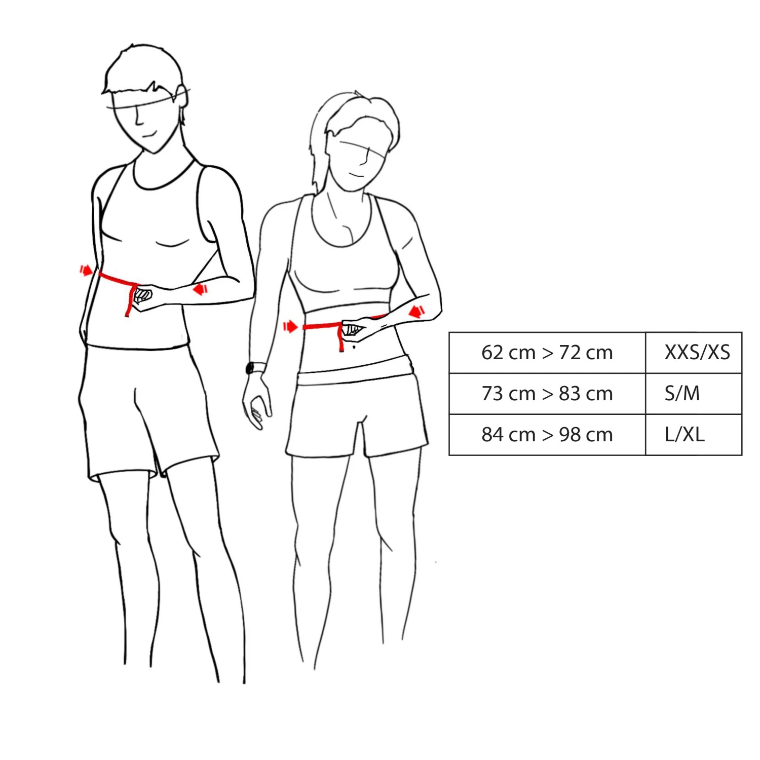XXS / XS: 62 CM < waist size < 72 CM